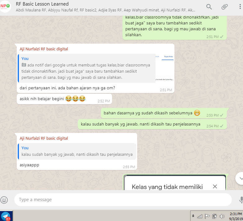 anda juga akan bergabung bersama kami di google classroom, dan whatsapp grup